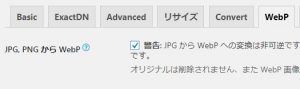 メディアタブの「WebP画像への置換」をオンするだけ。